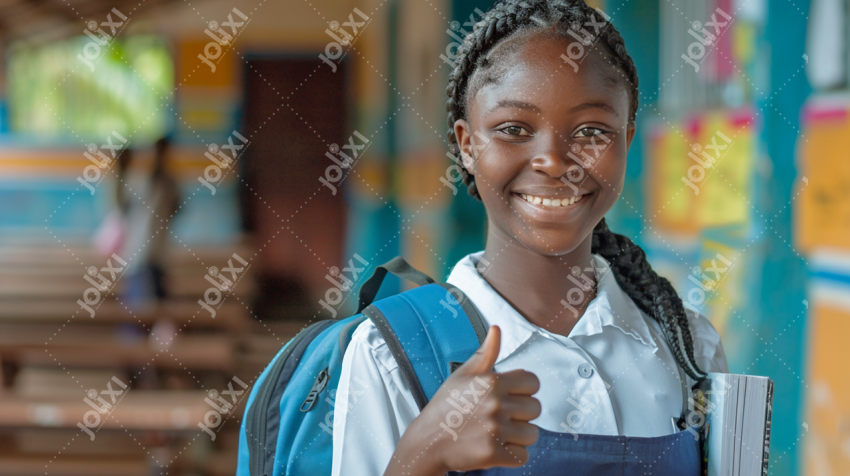 Une collégienne Souriante en Uniforme Scolaire avec Sac à Dos au Collège
