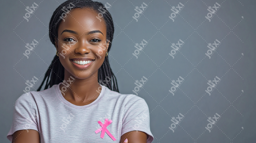 Femme africaine avec rubans des roses pour la sensibilisation au cancer du sein / Octobre rose