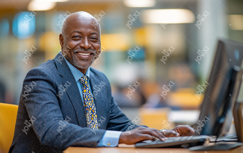 Homme d'affaire africain avec un arrière plan flou