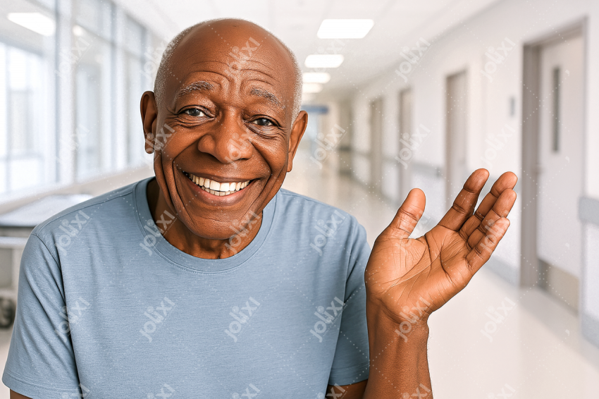 Sagesse et sourire : un geste bienveillant d’un homme senior