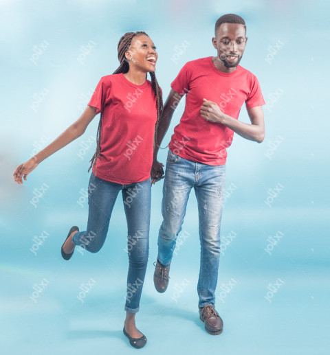 Jeunes amis africains célébrant leur victoire sur un fond beige