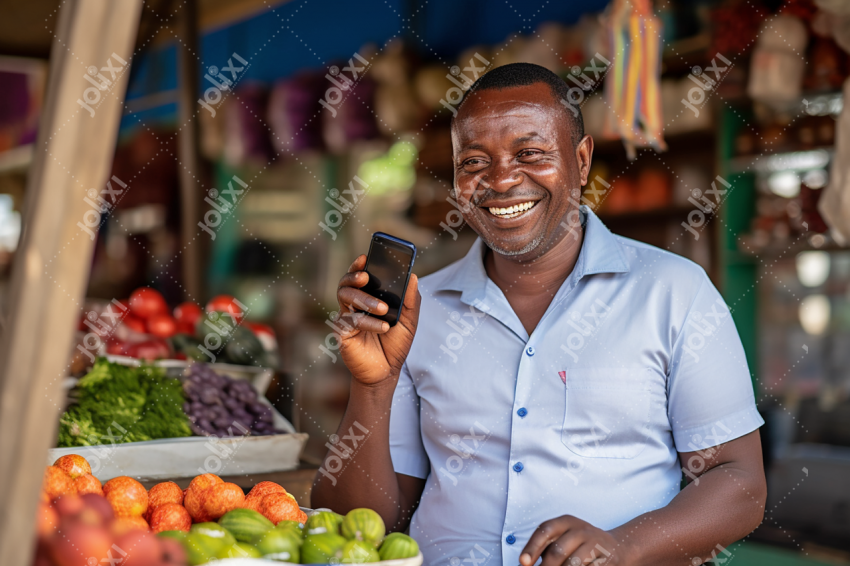 Entrepreneur Africain Souriant dans un Marché