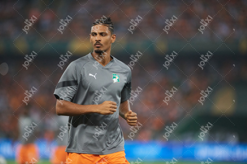 Sébastien Haller lors de l'échauffement des éléphants du match Côte d'Ivoire 2 vs 1 Nigéria, ABIDJAN, Côte d'Ivoire - 11 Février 2024. match de la Coupe d'Afrique des Nations 2023