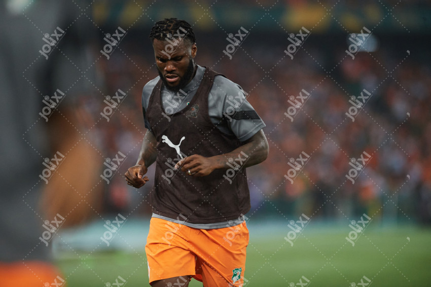 Seko Fofana lors de l'échauffement des éléphants du match Côte d'Ivoire 2 vs 1 Nigéria, ABIDJAN, Côte d'Ivoire - 11 Février 2024. match de la Coupe d'Afrique des Nations 2023