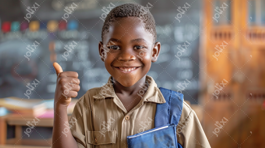 Un élève Africain Souriant en Uniforme Scolaire avec Sac à Dos
