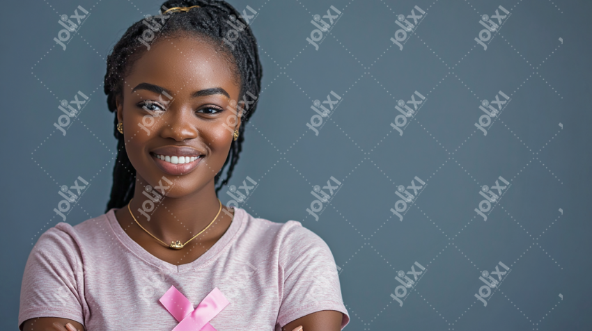 Femme africaine avec rubans des roses pour la sensibilisation au cancer du sein / Octobre rose