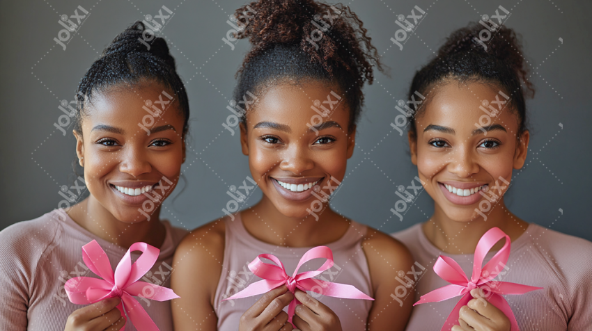 Trois Femme africaine avec rubans roses pour la sensibilisation au cancer du sein / Octobre Rose