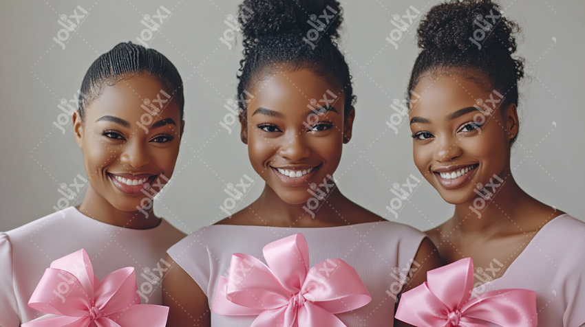 Trois Femme africaine avec rubans roses pour la sensibilisation au cancer du sein / Octobre Rose