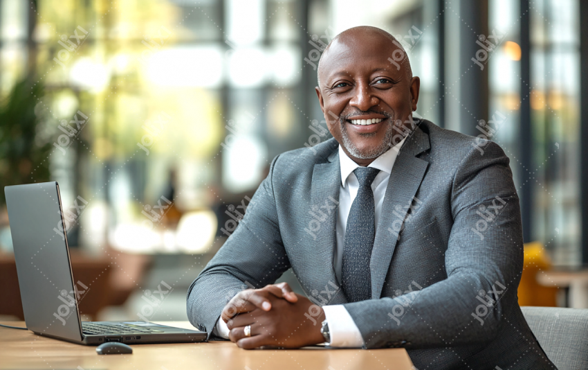 Homme africain avec un léger sourire croisant ses bras sur un fond jaune