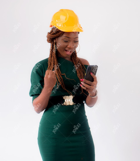 Belle femme africaine en tenue de chantier en joie