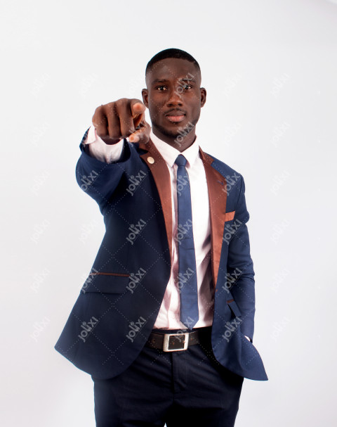 Jeune homme africain mettant ses mains dans sa poche sur un fond blanc