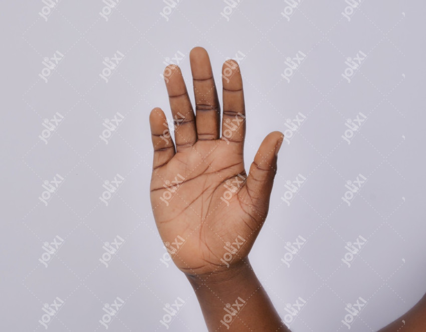Main feminine etendue sur un fond blanc