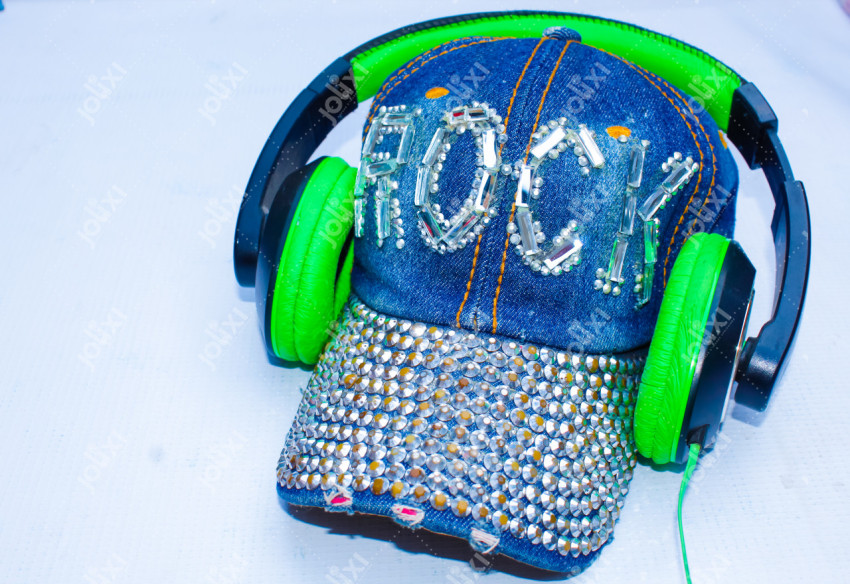 Photo affichant une casquette et un casque couleurs bleu et Vert. Bonne qualité et résolution.